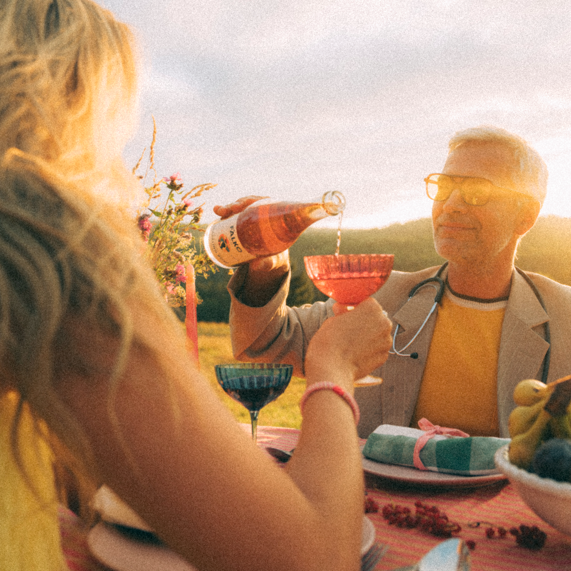 Prosto z naszego spotu - piękny kolorowy kieliszek, w którym bąbelki F'ALKO 0% smakują jeszcze lepiej!